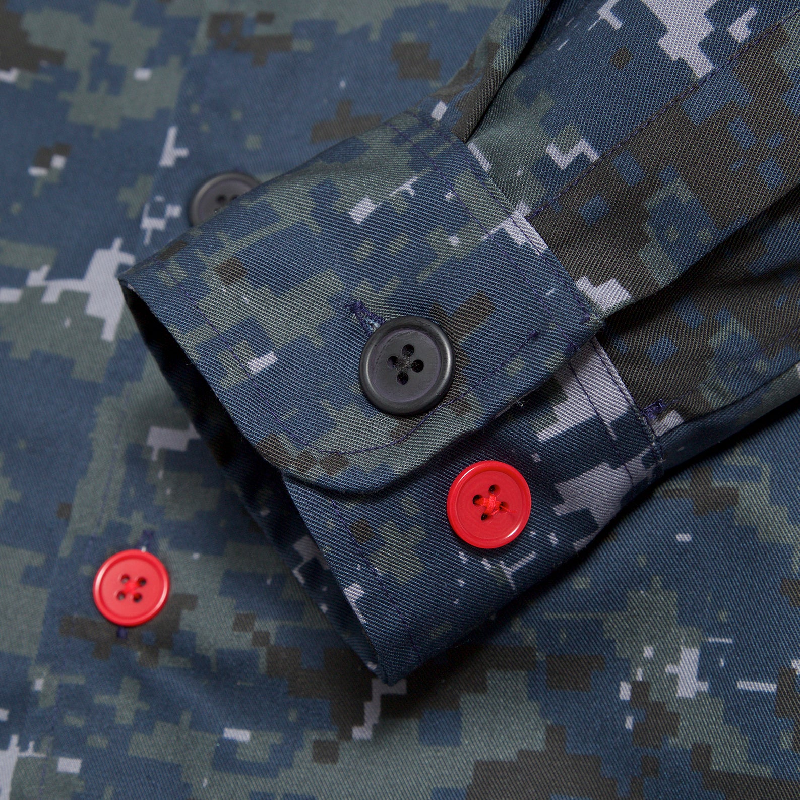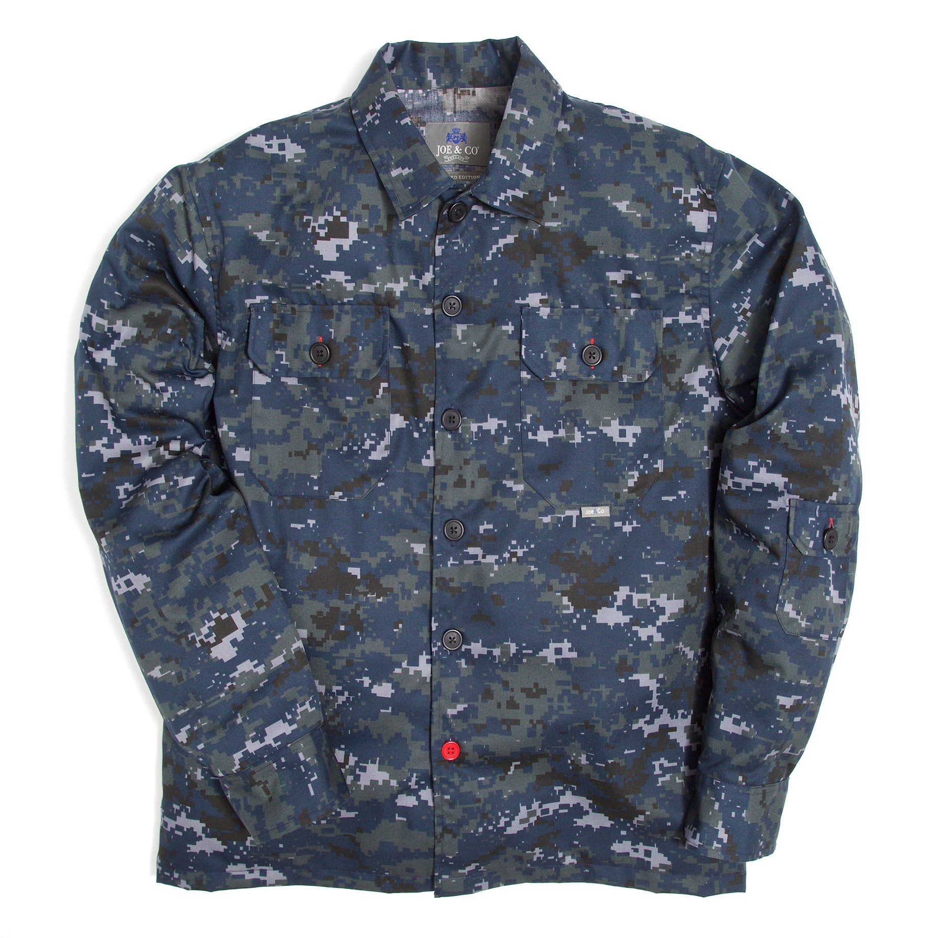 British Made water repelent deadstock US Navy NWU digi camo over shirt made in small batches in our little bespoke shirt factory in Ardwick Manchester