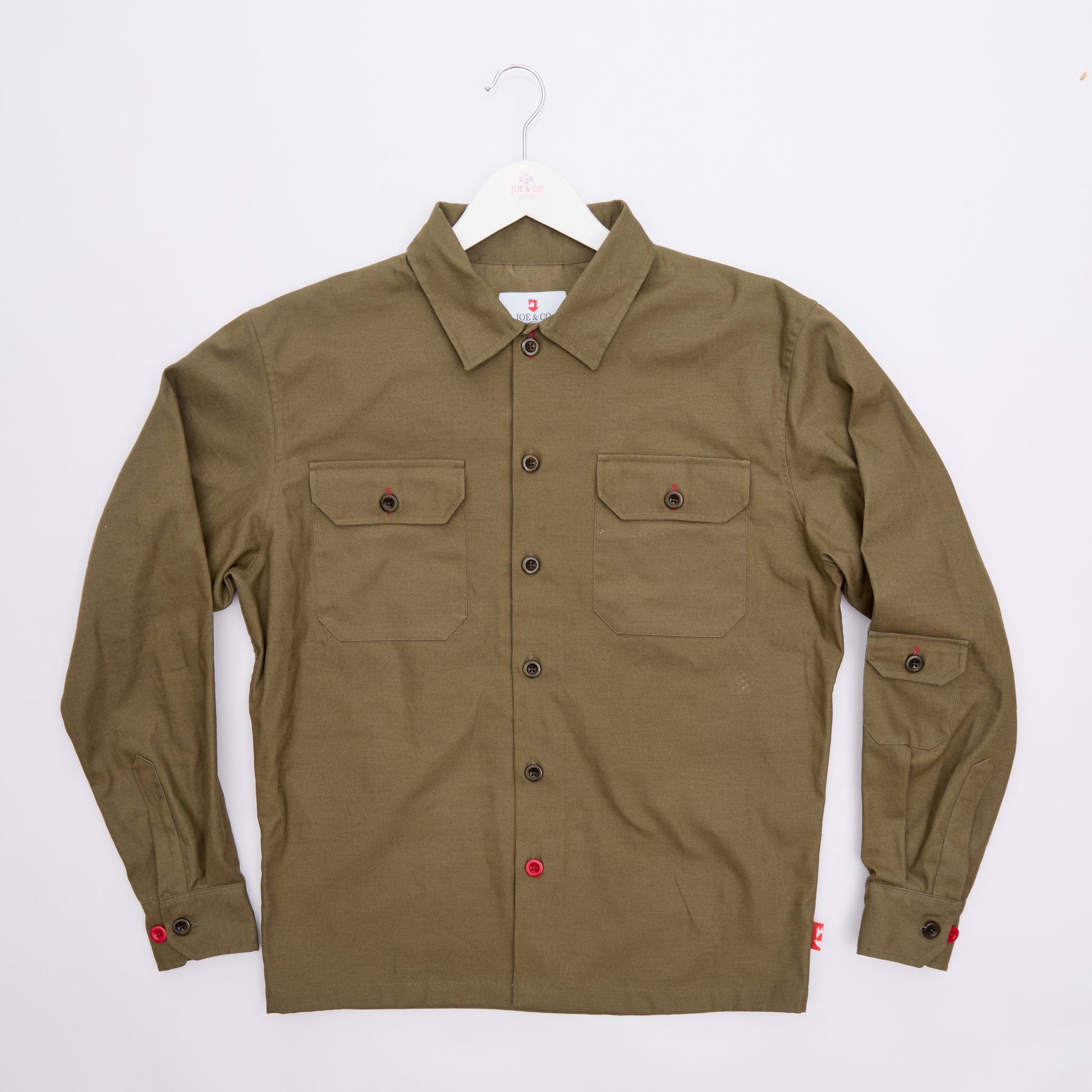 British made 100% cotton twill over shirt , hand crafted in our little bespoke workshop in Manchester, 2 front pockets, not too oversized, complimented with natural corozo nut buttons